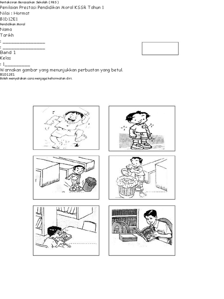 Lembaran Kerja Pendidikan Moral Tahun 3 Evidens Pbs Pendidikan Moral Tahun 1 Nilai Bertanggungjawab Band 1 6 Rexscana